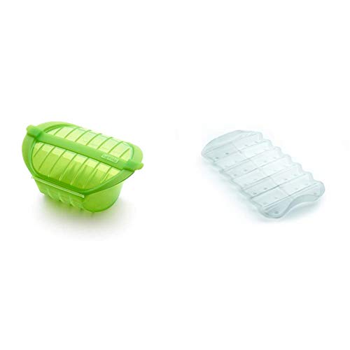 Lékué Ogya 1-2 verde Estuche Vapor, silicona platino, Personas + Bandeja multifuncion transparente BLANCA, Silicona, 19 x 10.5 x 2 cm
