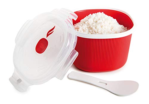 Sistema Olla de Vapor para Arroz, Color Rojo + Apta para microondas fácil de Huevos, 270 ml, cocinar Tortilla