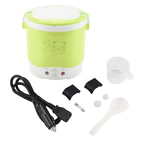 Olla arrocera para coche, olla arrocera eléctrica, olla arrocera multifuncional portátil eléctrica de 24 V, 100 W, 1 l, vaporizador de alimentos para el hogar, camión, uso al aire libre(green)